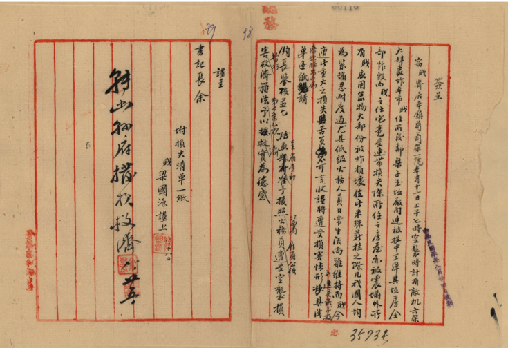 ▲《梁国源关于遭受日军空炸请求救济的呈文》