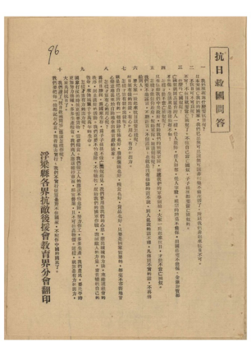 ▲抗日救国问答(市档案馆馆藏)