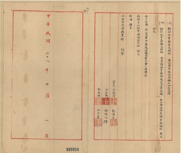 因抗战期间,景德镇高档艺术瓷法翠工艺对原料(需使用战略物资牙硝)、窑火位置等都有特殊需求。为了保证生产,特请政府同意成立同业公会以便沟通的一份呈文。