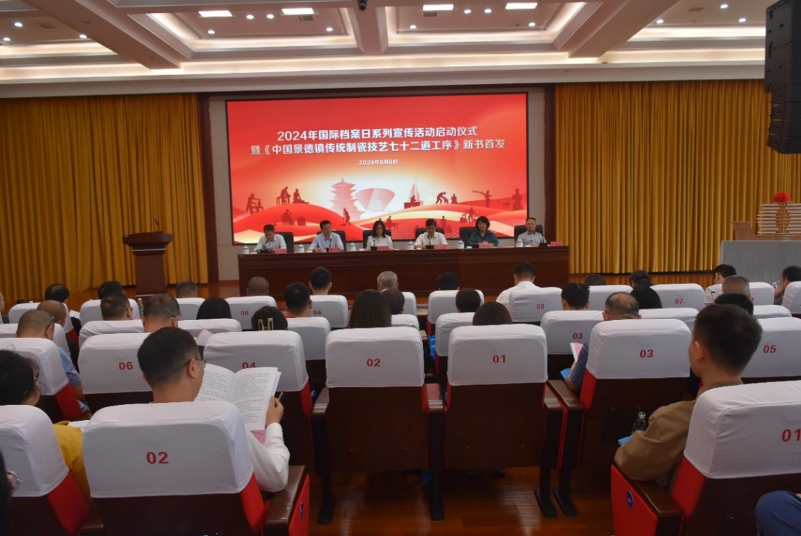 为庆祝第十七个“6·9”国际档案日,6月6日上午,市档案局、市档案馆联合开展2024年国际档案日系列宣传活动启动仪式暨《中国景德镇传统制瓷技艺七十二道工序》新书首发仪式。景德镇市委常委、副市长崔素香,景德镇市人大常委会副主任、市委秘书长罗建国,东南大学特聘首席教授、中国艺术人类学学会会长、名誉主编方李莉,景德镇市档案馆馆长、主编林茂盛,江西美术出版社党支部副书记、总编辑黄震出席活动,发布会由景德镇市委副秘书长、市委办公室主任吴水旺主持。全市各单位档案人员,新书编纂组成员、收藏家协会捐赠作品代表等共计180余人参加了仪式。