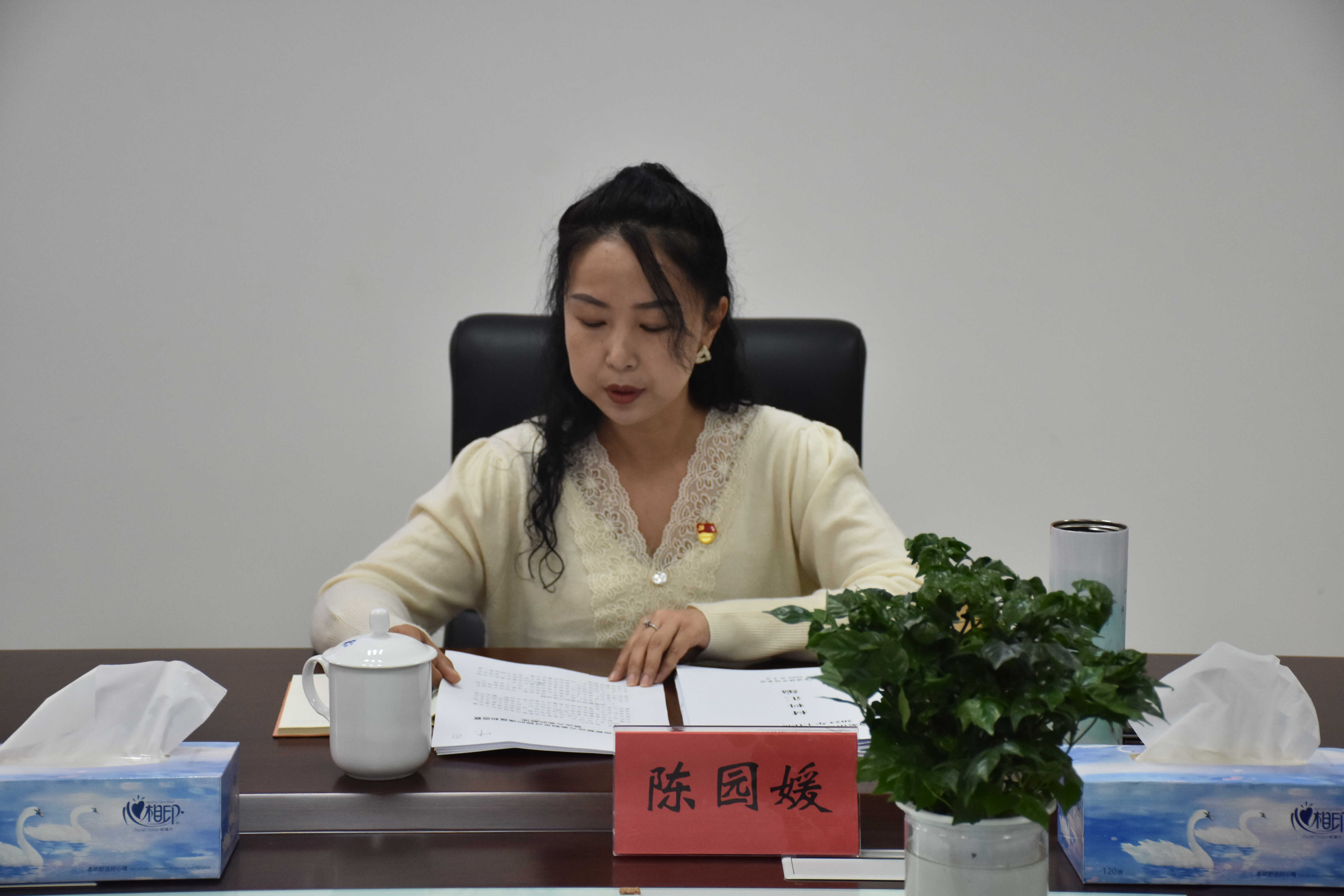 馆党组成员、副馆长陈志华、陈园媛分别对2023年机关效能、基层党建、档案编研、档案接收、档案利用、档案宣传、档案数字化和人才队伍建设等作了具体要求和相关部署。最后,各科室负责人对2023年工作安排和计划作表态发言。