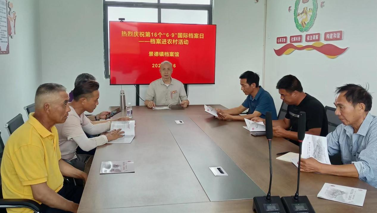 6月16日下午,由市档案馆二级调研员郑骁带队,组织市档案馆部分干部前往乐平市浯口镇杨溪村开展档案进农村宣讲活动。在杨溪村委会二楼布置简单的会议室内,郑骁为杨溪村两委干部就如何管理、保存、利用好新农村建设档案进行现场授课讲解。郑骁还向杨溪村两委干部介绍了景德镇市档案馆近年在档案业务建设上所取得的成就,并热情邀请杨溪村两委干部在适当时候来景德镇市档案馆参观《“瓷都千年”——景德镇市历史文化档案纪实展》。