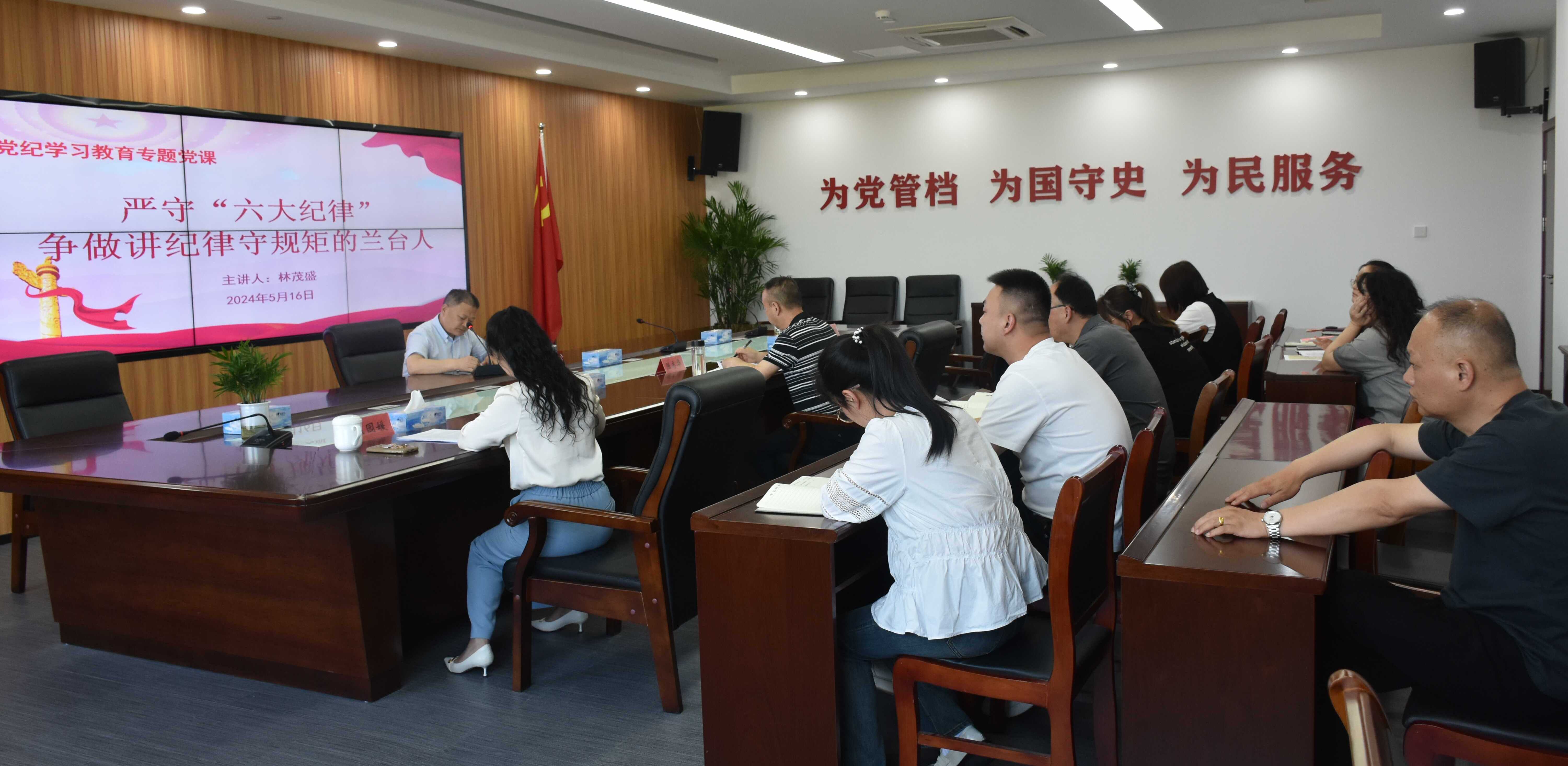 5月16日,市档案馆党纪学习教育读书班开班。市档案馆党组书记、馆长林茂盛出席开班式并作专题党课报告。