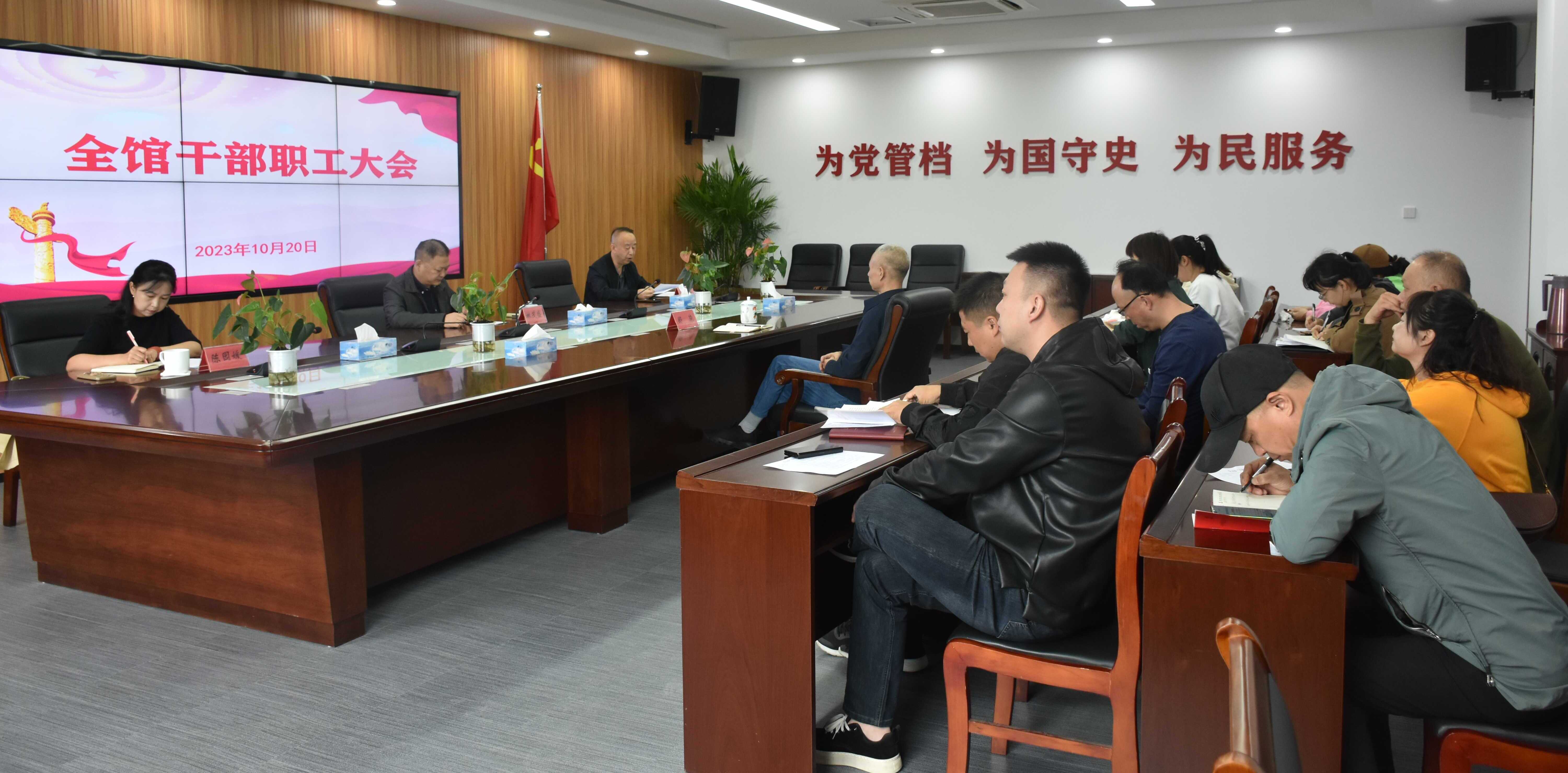 10月20日上午,市档案馆召开全馆干部职工大会,专题传达学习习近平总书记在江西考察时的重要讲话精神、习近平总书记在进一步推动长江经济带高质量发展座谈会上的重要讲话精神,以及全市领导干部会议精神。党组书记、馆长林茂盛同志主持会议。