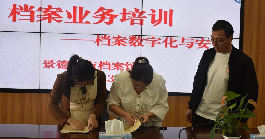 培训会上,档案信息技术科负责人就《景德镇市档案馆档案数字化工作安全保密管理暂行办法》《江西省纸质档案数字化管理技术与规范》和《馆藏档案资料档号编制规则》等进行了全面的讲解,从档案出库、整理分件、建元数据库、档案扫描、图像处理、数据质检、档案还原入库、数字化成果验收移交等环节作了详细讲授。针对数字化加工过程中可能存在的问题进行了现场提问和解答,并就纸质档案装订进行了实操培训。