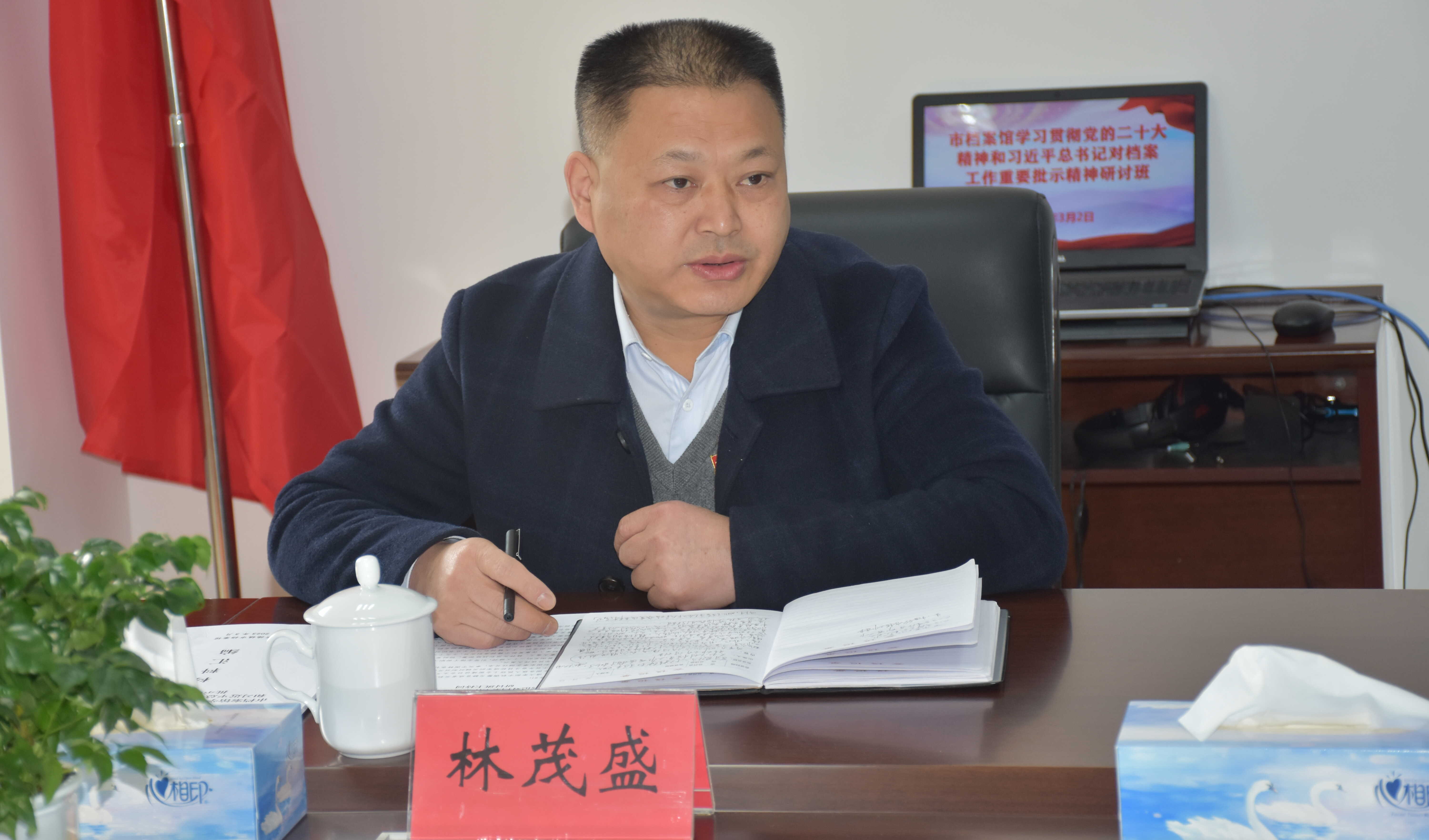 为深入学习贯彻党的二十大精神和习近平总书记对档案工作重要批示精神,切实把全馆干部职工的思想和行动统一到党的二十大精神上来,持续推动档案事业高质量发展,3月3日,景德镇市档案馆举办学习贯彻党的二十大精神和习近平总书记对档案工作重要批示精神研讨班,特别邀请党的二十大代表、景德镇市委信访局副局长姚石玉宣讲党的二十大精神。党组书记、馆长林茂盛主持会议,全馆干部职工参会。