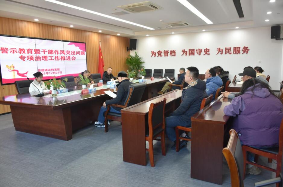 12月25日,景德镇市档案馆召开警示教育暨干部作风突出问题专项治理工作推进会,馆党组书记、馆长林茂盛主持会议并讲话,全馆干部职工参加会议。