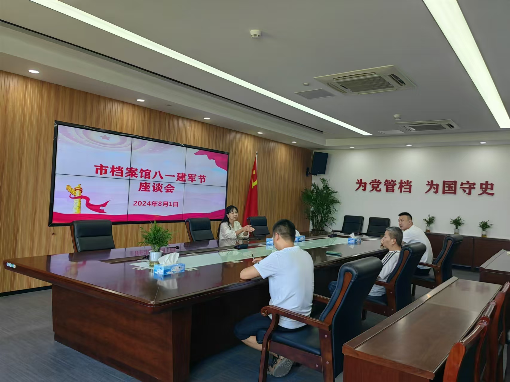 8月1日,在中国共产党建党97周年之际,市档案馆组织召开了“八一”建军节退役军人座谈会,馆党组成员、副馆长陈园媛主持会议,馆退役军人参加会议。
