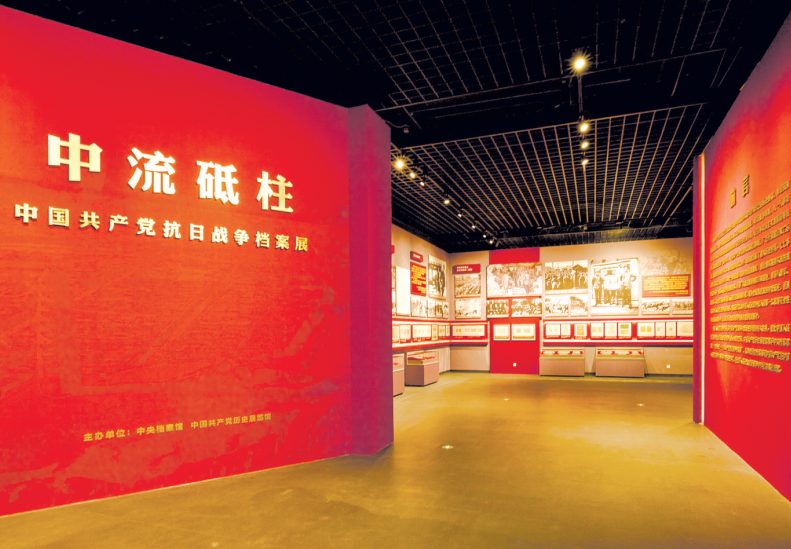 展览分为八个单元,展出了340余份珍贵历史文献档案,内容包括抗日战争重大事件档案、重大战役战斗档案以及毛泽东、周恩来、刘少奇、朱德、邓小平、陈云等党的领导人亲笔起草的电报、书信、讲话、题词等资料,全面展现14年艰苦卓绝的抗战历程中,中国共产党团结带领抗日军民用生命和鲜血谱写了中华民族历史上抵御外侮的伟大篇章,集中反映中国共产党在抗日战争中的中流砥柱作用,在世界人民反法西斯战争中作出的突出贡献,大力传承和弘扬伟大抗战精神。