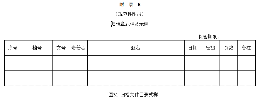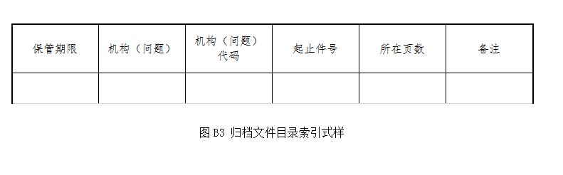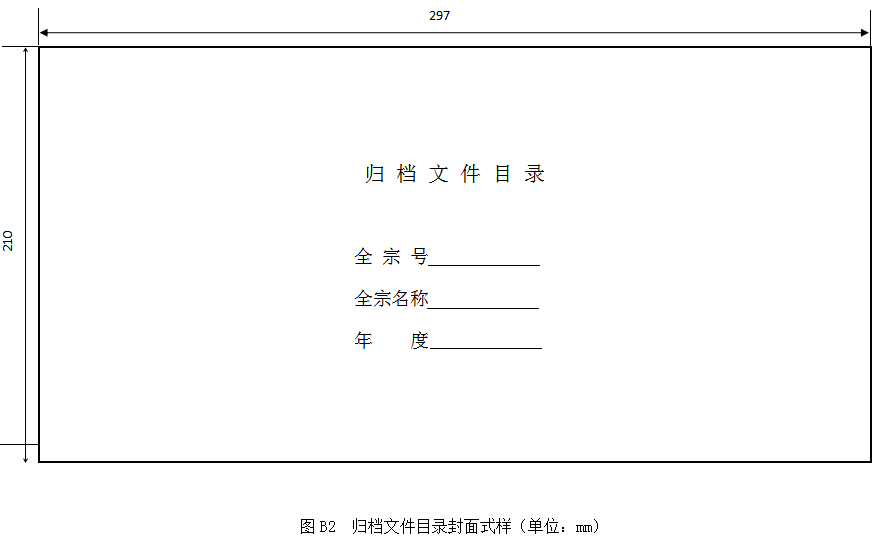 2.5.4归档文件目录除保存电子版本外,还应打印按年度装订成册。装订成册的归档文件目录,应编制封面,见附录B 图B2。封面设置全宗号、全宗名称、年度,其中全宗名称即立档单位名称,填写时应使用全称或规范化简称。归档文件目录应编制索引,置于目录前面,其内容包括保管期限、机构(问题)、机构(问题)代码、起止件号、所在页数、备注等项,见附录B 图B3。